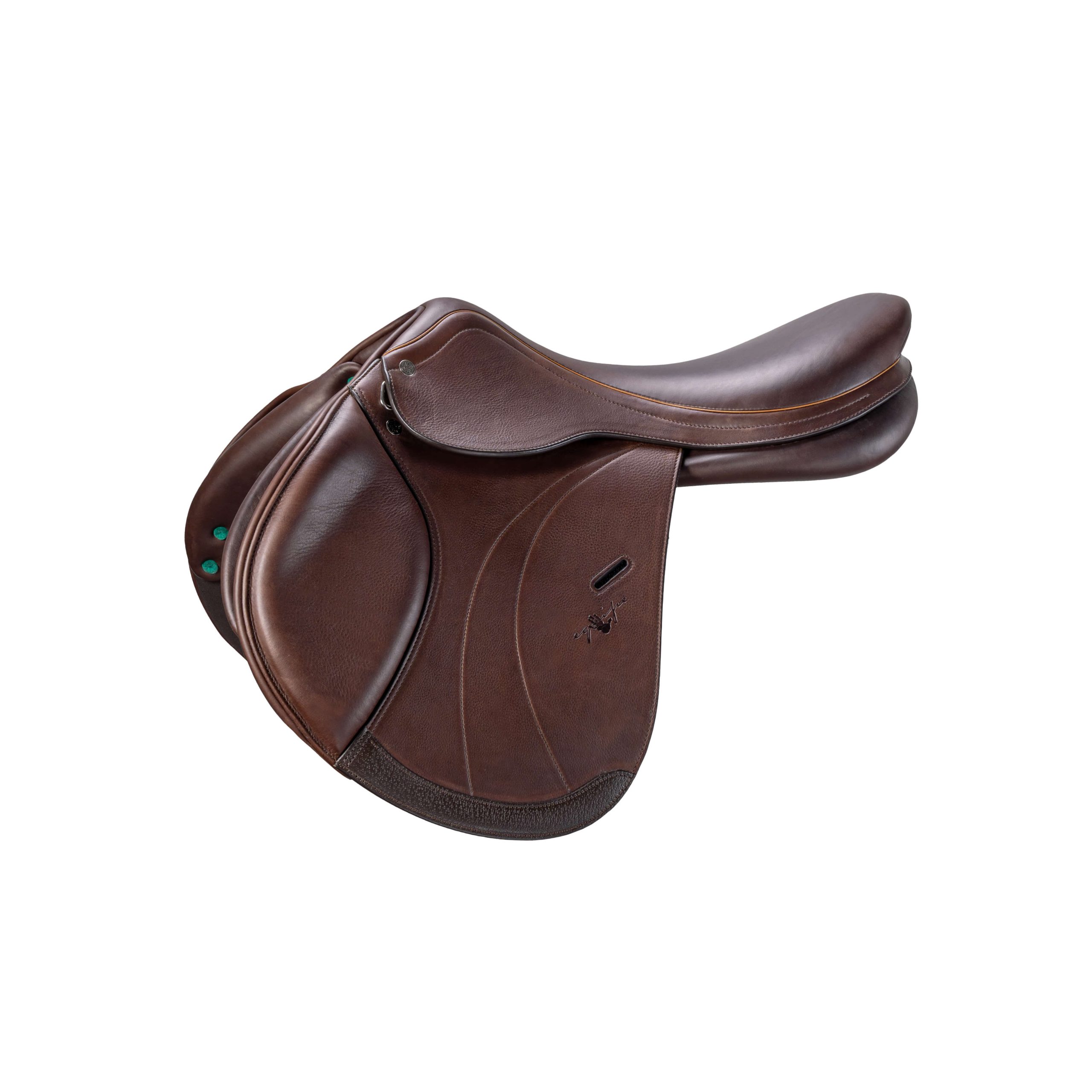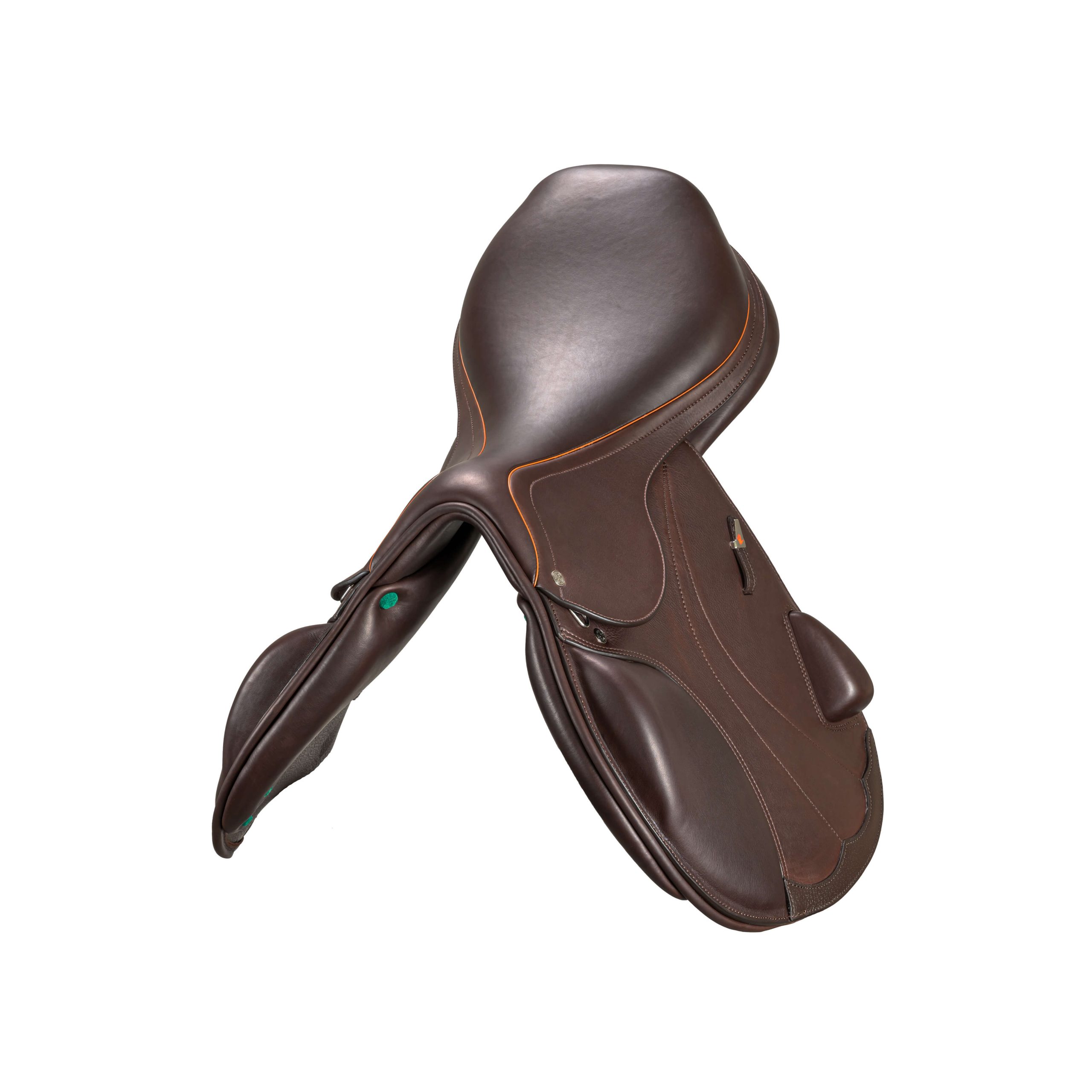 The Equipe Expression jumping saddle revolutionizes the concept of dynamism in show jumping thanks to its innovative composite tree, exceptionally light yet durable. The flat seat is a winning choice for riders who seek maximum freedom of movement, allowing quick and natural position changes during the most complex jump sequences. In the Mono-flap version, this saddle further enhances sensitivity and direct connection with the horse. The essential design hides sophisticated ergonomics that improve performance without compromising comfort. A product of Italian craftsmanship, each Expression is handmade with premium materials, making it the ideal choice for those who don’t want to compromise on lightness and responsiveness in the most demanding competitions.