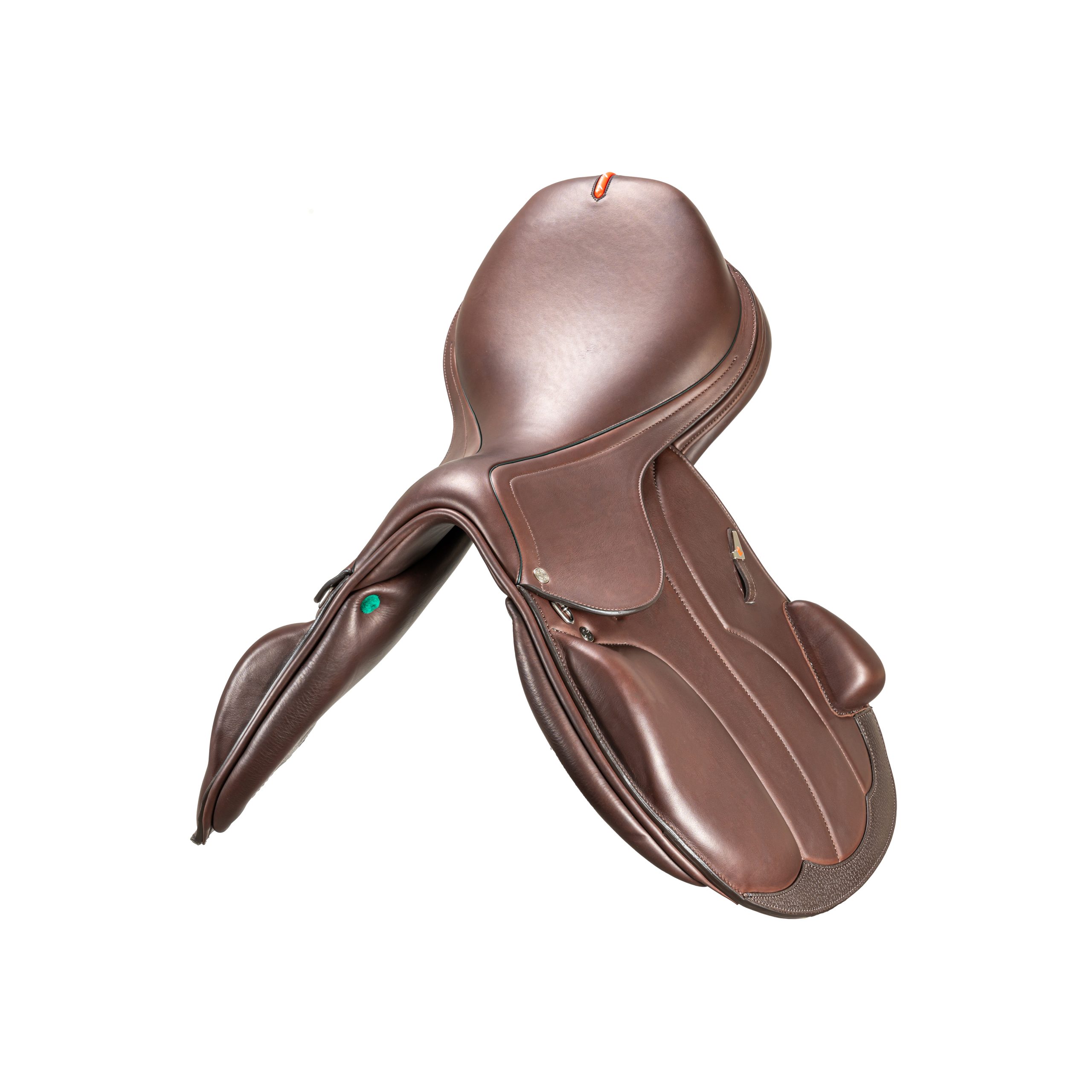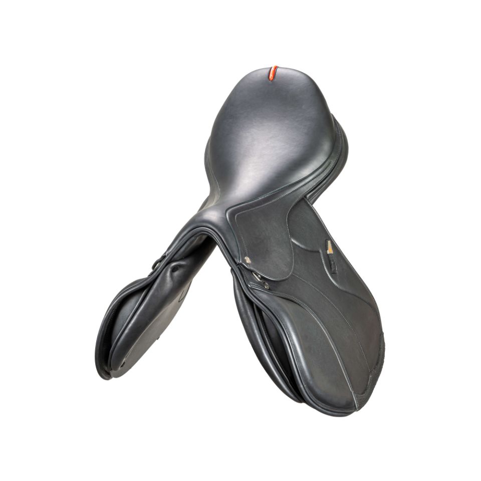 The Synergy saddle by Equipe represents the perfect balance between performance and design in show jumping. The composite tree offers an exceptional combination of lightness and strength, ensuring responsiveness throughout all phases of the jump. The refined design stands out with functional and aesthetic details: from reinforced stitching to high-quality leather inserts, every element is crafted to blend elegance and practicality. The saddle provides excellent support during jumps while maintaining the freedom of movement essential for optimal performance. Also available in the Mono-flap version, which further improves direct contact with the horse.